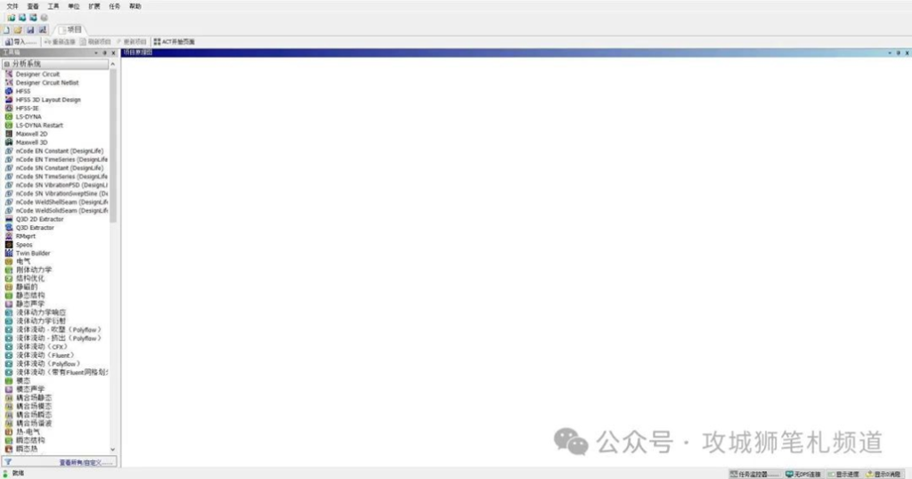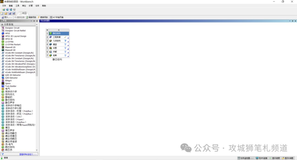 拖拽 “分析系统” 工具箱中的 “静态结构” 模块至项目原理图或双击 “静态结构” 模块。