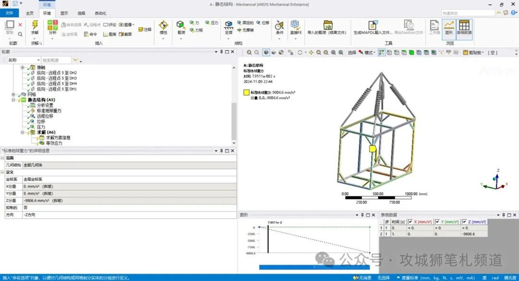 2)单击静态结构 A5,环境——惯性——标准地球重力——方向(-z)。