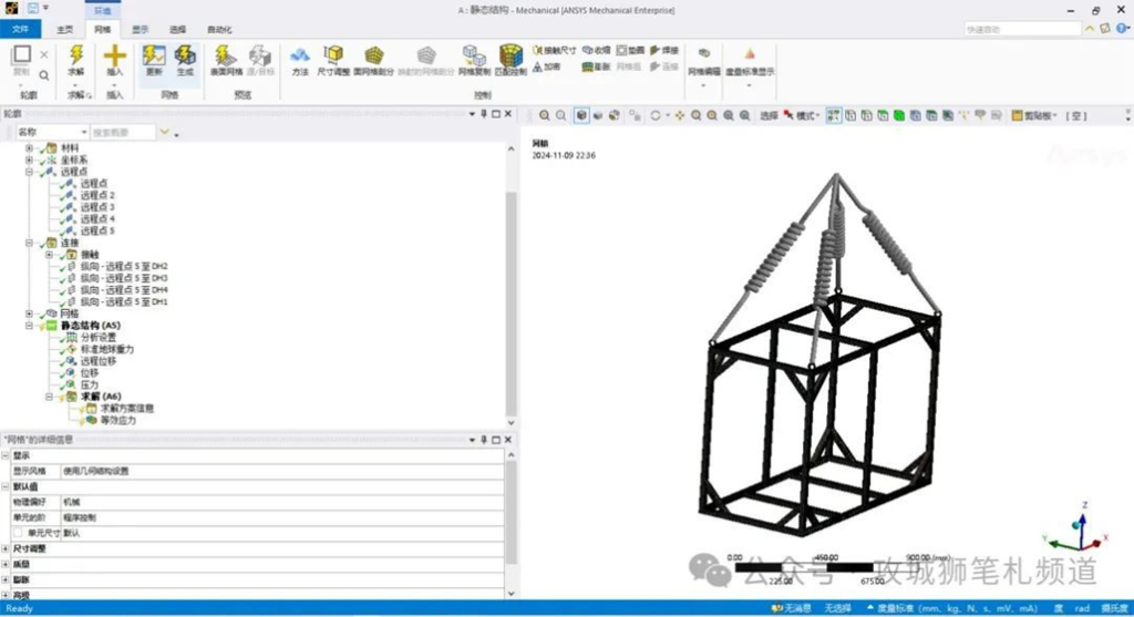点击模型树——网格,环境切换至网格,软件自动生成网格。