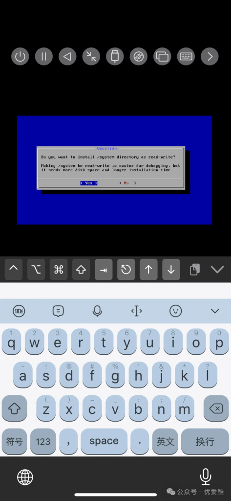 - 接下来,决定是否以读写模式挂载 / system 目录。对于普通用户来说,选择 “否” 即可;如果您需要修改系统文件,则可以选“是”。