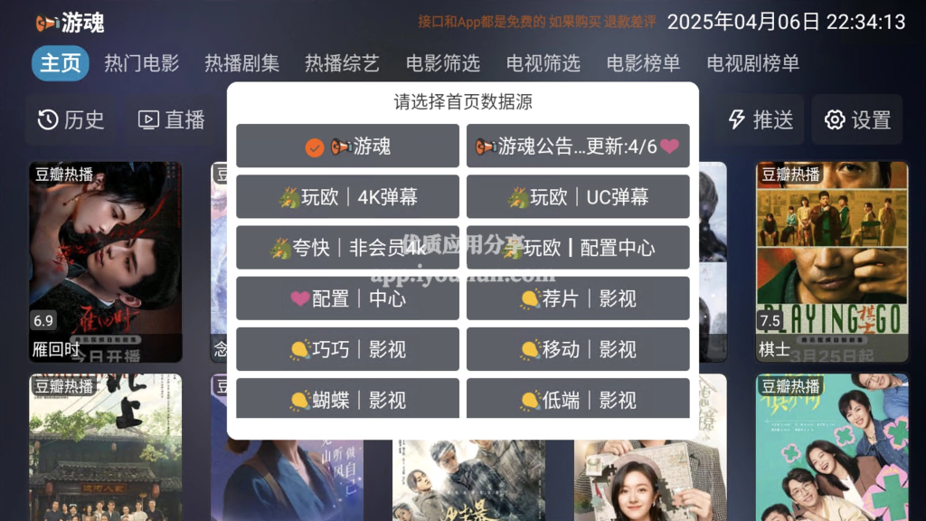 部分软件或者接口不支持在播放页面弹出,请查看自己软件是否更新到最新版或者接口自带有无配置中心,去配置中心设置。