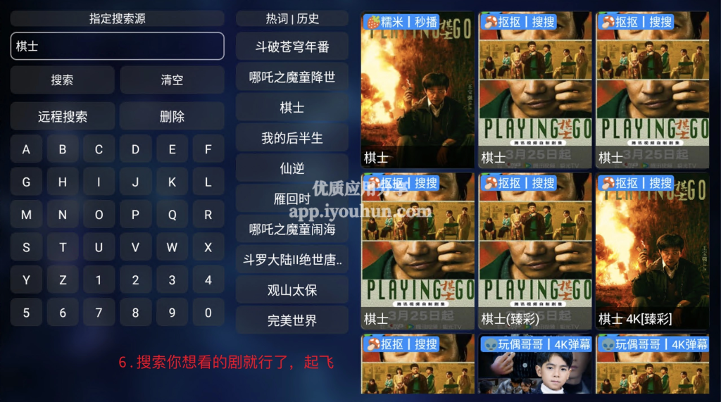 2. 通过搜索页面可以搜索影视剧、动漫、综艺等内容