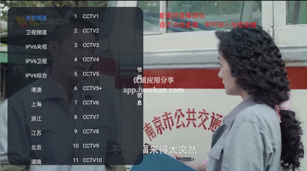 3. 首页点击直播,可以观看电视直播内容。如央视、卫视等内容